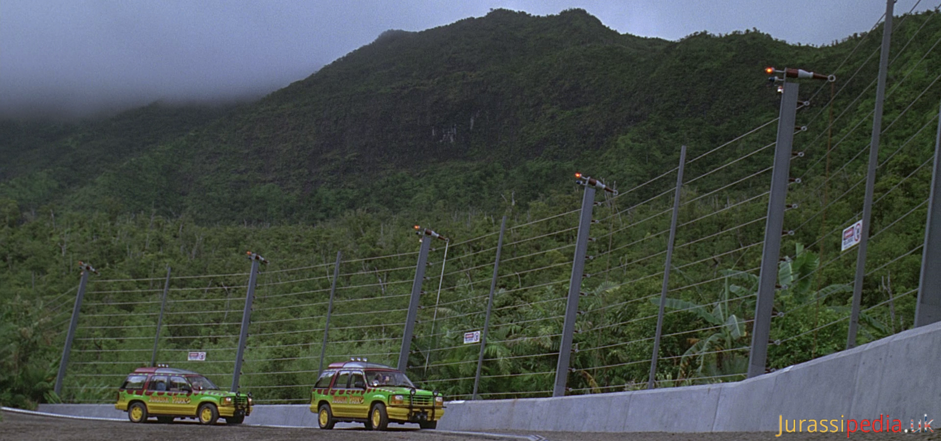 Some also had concrete moats near them, such as the Tyrannosaur Paddock. Smaller fences, between five-to-eight feet tall were found near the Dilophosaur Paddock.