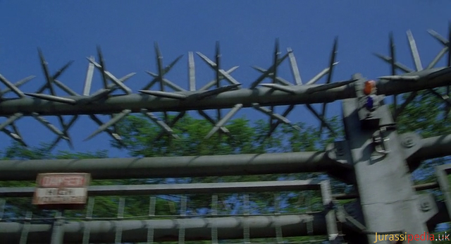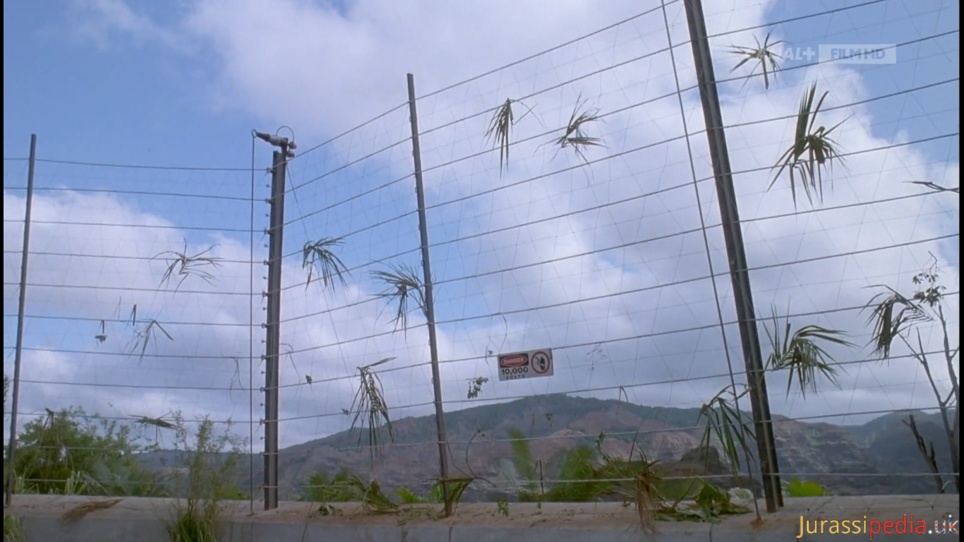 On Isla Sorna there were several broken down electric fences. A perimeter fence that lined the Worker Village and a stretch of specialised fencing near the Aviary observatory.